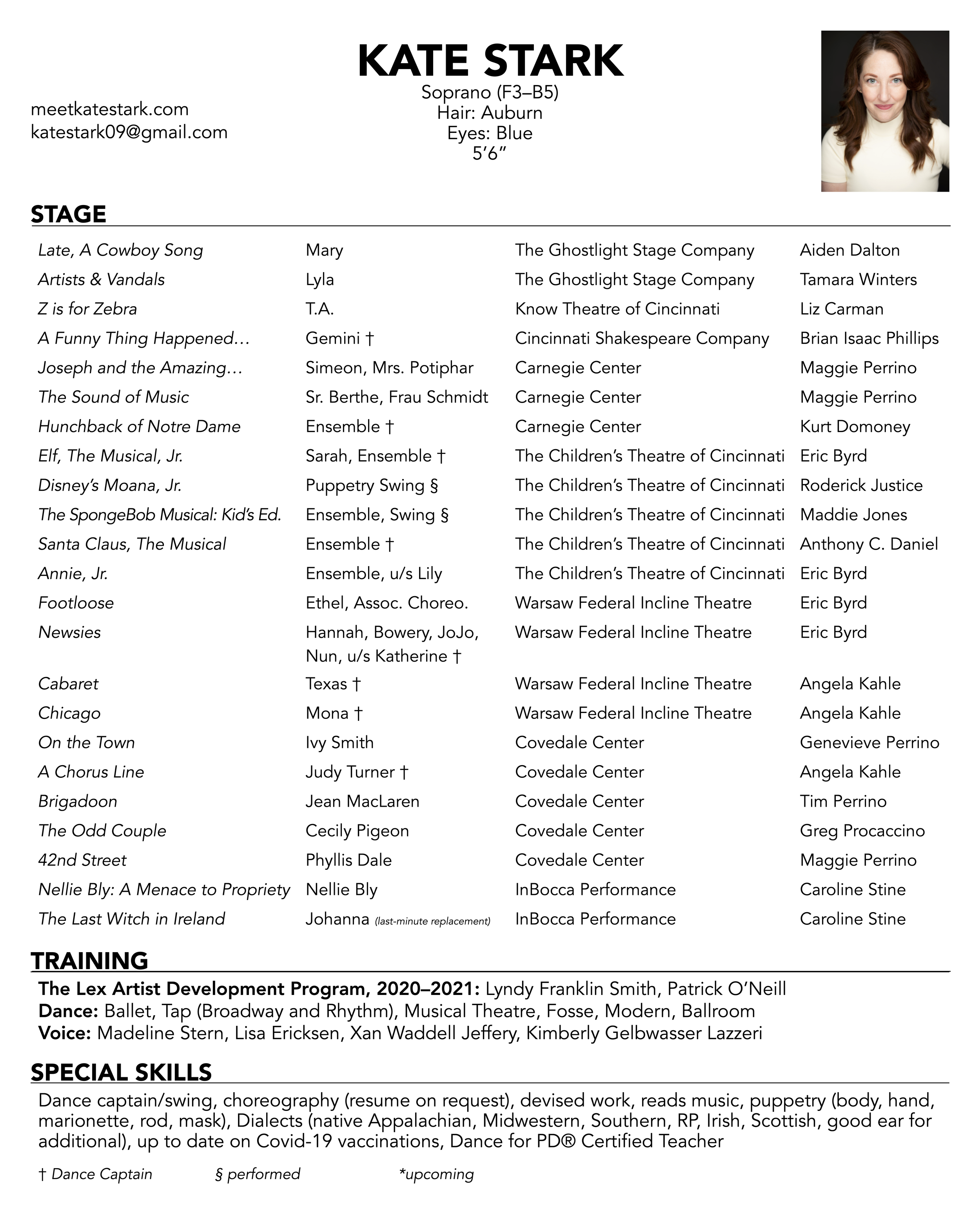 Favorite roles: Mary (Late, A Cowboy Song), Ivy (On the Town),